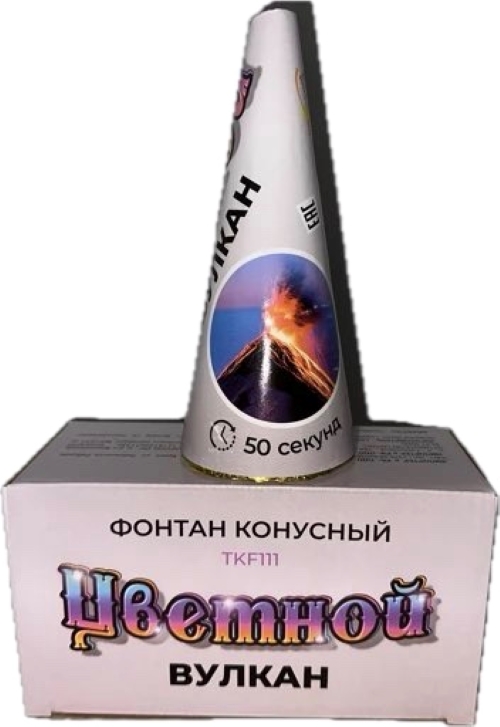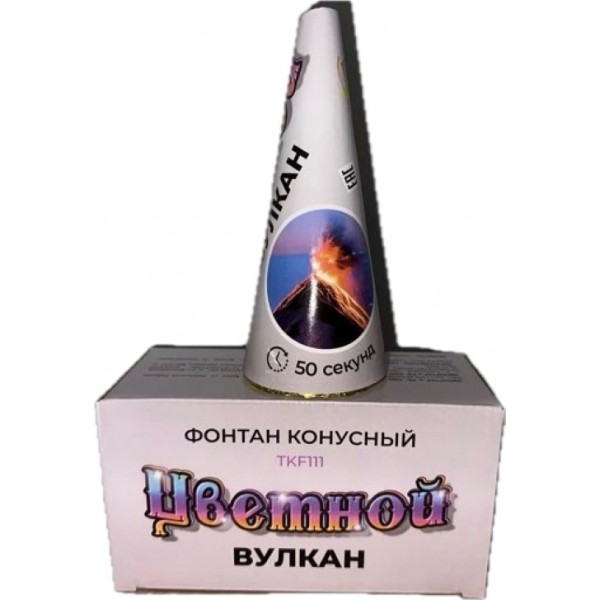 TKF111_ТК Сервис_Конусный фонтан "Разноцветный Вулкан"(серебр.+крас.,зел.,синие искры+серебр. треск)_18/2/1