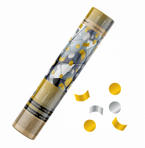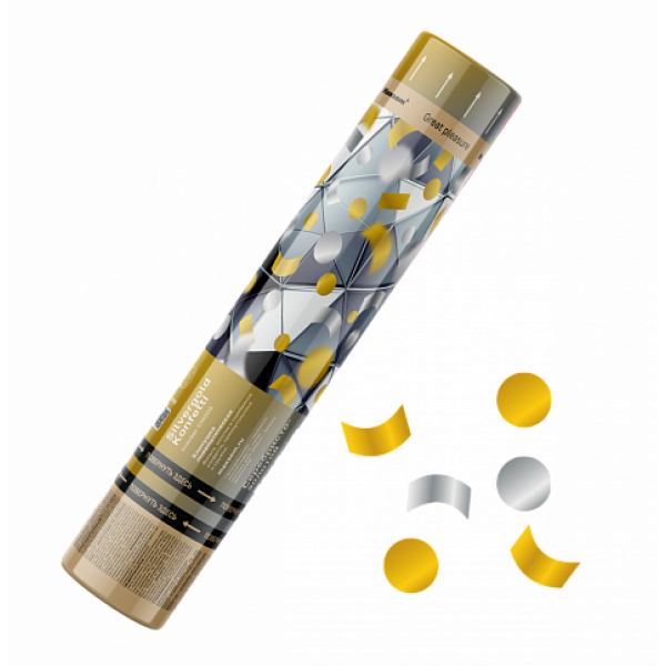 СМ009_Максэм_Пневмохлопушка зол.,серебр. конфетти,прямоугол.,кружки 30 см_100/1 в Казани